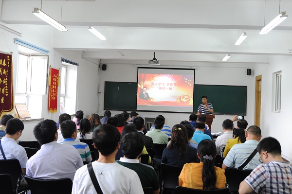 学院党委书记郭立祥作了题为《深入学习 贯彻落实“两学一做”》主题报告。报告中郭立祥书记首先讲述了什么是“两学一做”和为什么要开展“两学一做”,并强调“两学一做”的基础在于“学”、关键在于“做”,要真真正正地、深入地学习党章党规、学习习近平总书记系列重要讲话精神,各党支部要以“三会一课”等党的组织生活为基本形式,充分落实党员教育工作;全体党员师生在学习中要注重坚持学用结合和领导带头,紧紧围绕学院的中心工作组织开展学习教育并通过学习讨论,真正提高认识,找到差距,明确努力方向。并要求各支部要召开专题组织生活会,查摆在思想、组织、作风、纪律等方面存在的问题。要面向党员和群众广泛征求意见,严肃认真开展批评和自我批评,针对突出问题和薄弱环节提出整改措施。组织全体党员对支部班子的工作、作风等进行评议,结合实际制定具体推进方案。