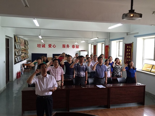 大会在雄壮激越的国歌声中拉开帷幕,在大会主持人的带领下,全体党员高举右拳首先重温了入党誓词。随后,学院院长岳晓峰宣读了关于《机电工程学院创先争优先进个人表彰决定》和《“两学一做”学习教育活动党章知识竞赛获奖名单》,学院党委成员分别为优秀党员代表和获奖代表进行了颁奖并合影留念。最后,学院党委书记郭立祥做总结讲话,讲话中他回顾了我党走过的95年风雨历程,希望全院党员能够准确把握“两学一做”的目标要求,起到榜样示范作用,坚定信念、同心同德,用辛勤汗水书写无愧于时代的壮丽篇章,做一名合格党员。