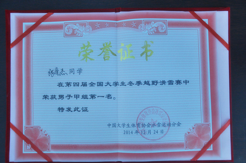2015年1月2日,由中国大学生体育协会冰雪分会主办、吉林省教育厅承办,共有18所高校36支男、女代表队,500余名运动员参加的第四届全国大学生冬季越野滑雪比赛闭幕式及颁奖仪式在长春净月潭滑雪场隆重举行。我院2013级机械工程专业研究生张毫杰同学取得男子甲组个人第一名的好成绩,为学校争得了荣誉。